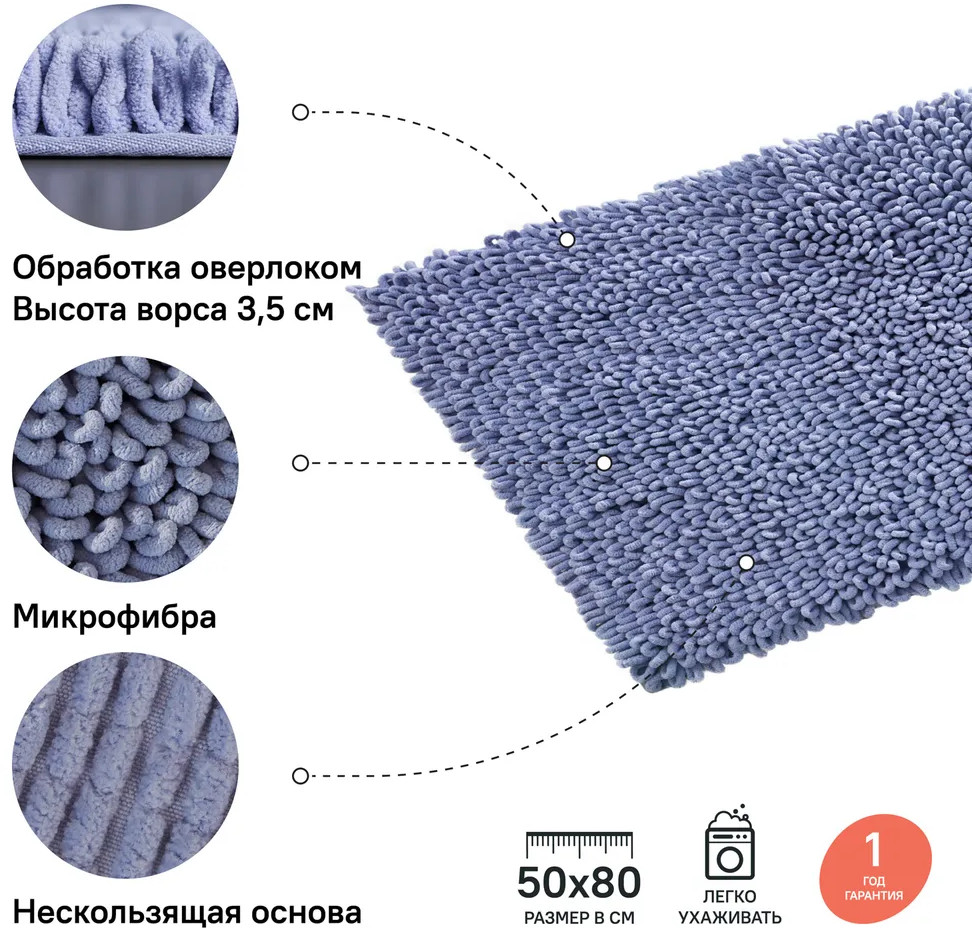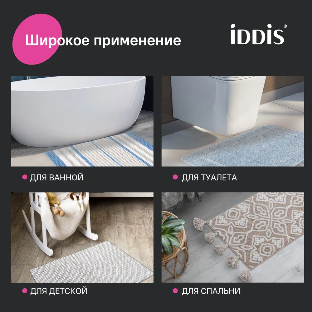 • этот коврик в ванную противоскользящий: нескользящая основа из экологичного полимерного материала (Hotmelt) не пропускает влагу и не впитывает запахи;
