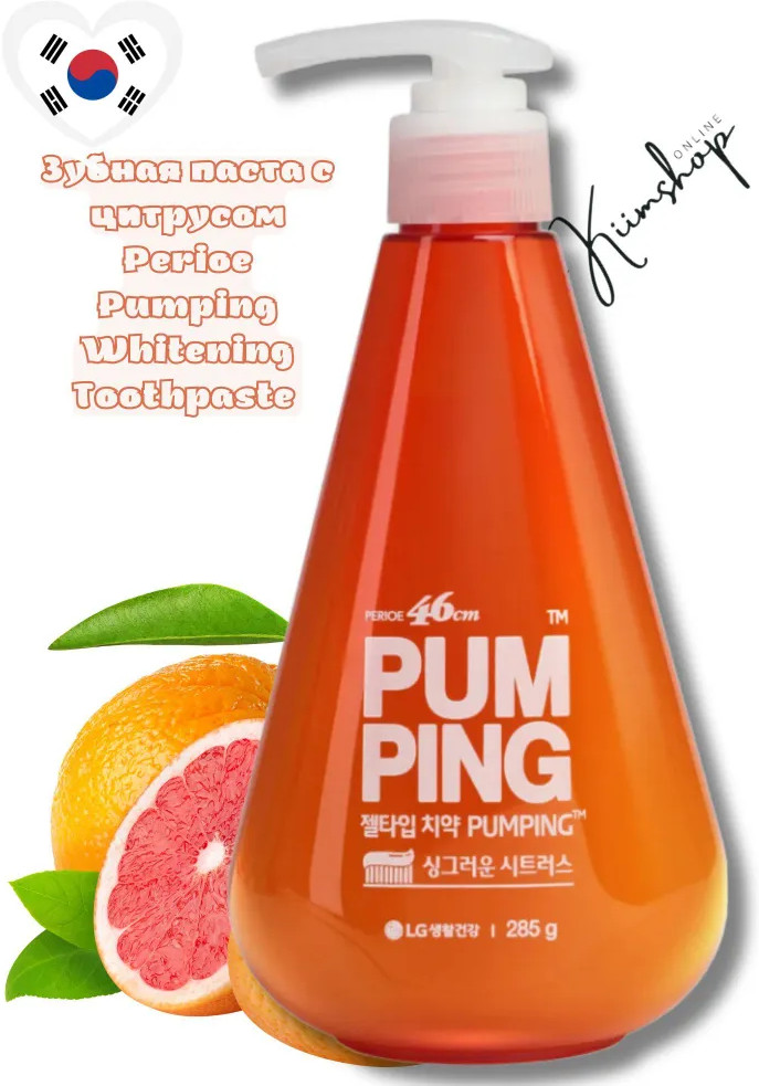 Корейская отбеливающая зубная паста Perioe Pumping в форме геля с мягким и свежим цитрусовым вкусом бережно и эффективно очищает поверхность зубов, заботится о состоянии полости рта и повышает эстетический внешний вид. Способствует устранению налета от чая, кофе и сигарет.
