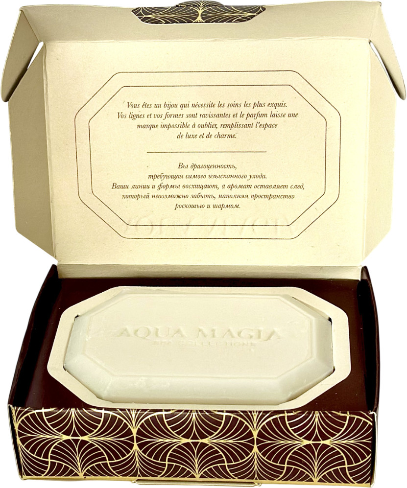 AQUA MAGIA Парфюмированное мыло «Aqua magia. Dore»В данный момент этот товар отсутствует в продаже. Возможно, у нас найдется аналогичный или похожий товар здесь. Парфюмированное твёрдое мыло. Погрузитесь в атмосферу утончённого ухода с мылом Aqua Magia, созданным на основе мягкой очищающей формулы с ланолином и изысканной французской отдушкой. |