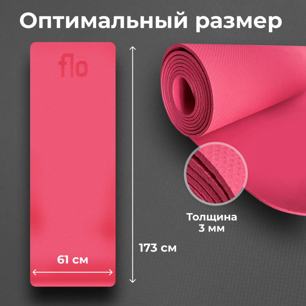 Коврик для йоги FLO — это идеальный аксессуар для занятий йогой, растяжкой и медитацией. Он выполнен из высококачественного материала EVA, который отличается эластичностью, прочностью и долговечностью. Благодаря этим характеристикам коврик не только сохраняет свою форму, но и не сворачивается и не гнется по краям, обеспечивая надежную и комфортную опору для тела.