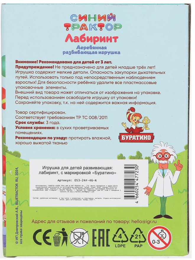 Буратино Игрушка развивающая лабиринт «Синий Трактор»-35%
