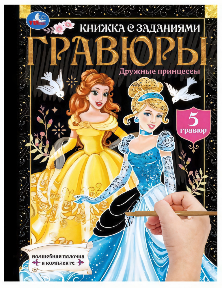 Книга-гравюра с заданиями «Дружные принцессы » ТМ «УМка» — отличный подарок для юных художников: