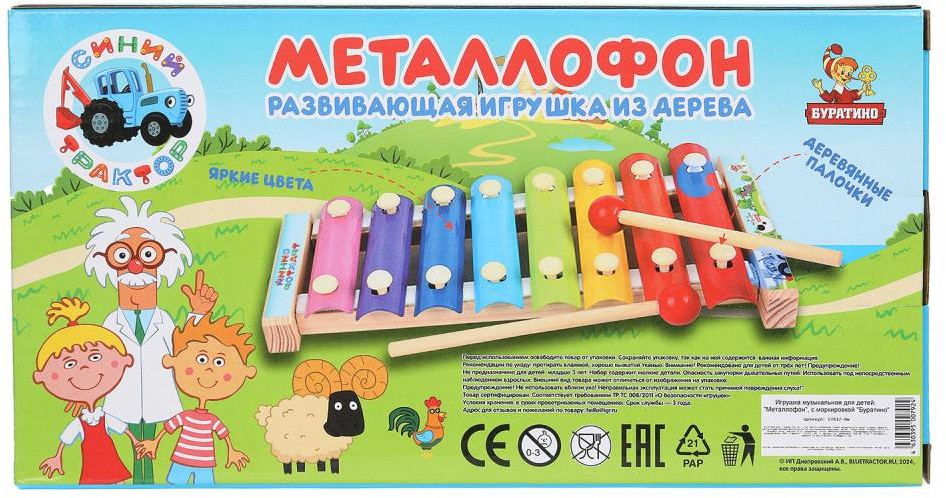 💳 Оплатить за товар можно при получении 🇰🇿 Есть бесплатная доставка по Казахстану от 1 дня 🎁 Копите бонусы с каждой покупки Серия: Синий трактор Развивающая игрушка из дерева — металлофон «Синий Трактор» ТМ «Буратино» порадует юных музыкантов. Металлофон — один из любимых детских музыкальных инструментов, с которым так весело играть. Игрушка состоит из 8 пластинок разных цветов, слегка ударяя по которым палочкой, малыш сможет извлекать звуки разной тональности. С помощью металлофона можно научить ребёнка различать на слух звуки разной высоты, чувствовать ритм, а также играть на нём простые мелодии, сочетая разные звуки и складывая в ритмы и мелодии. |