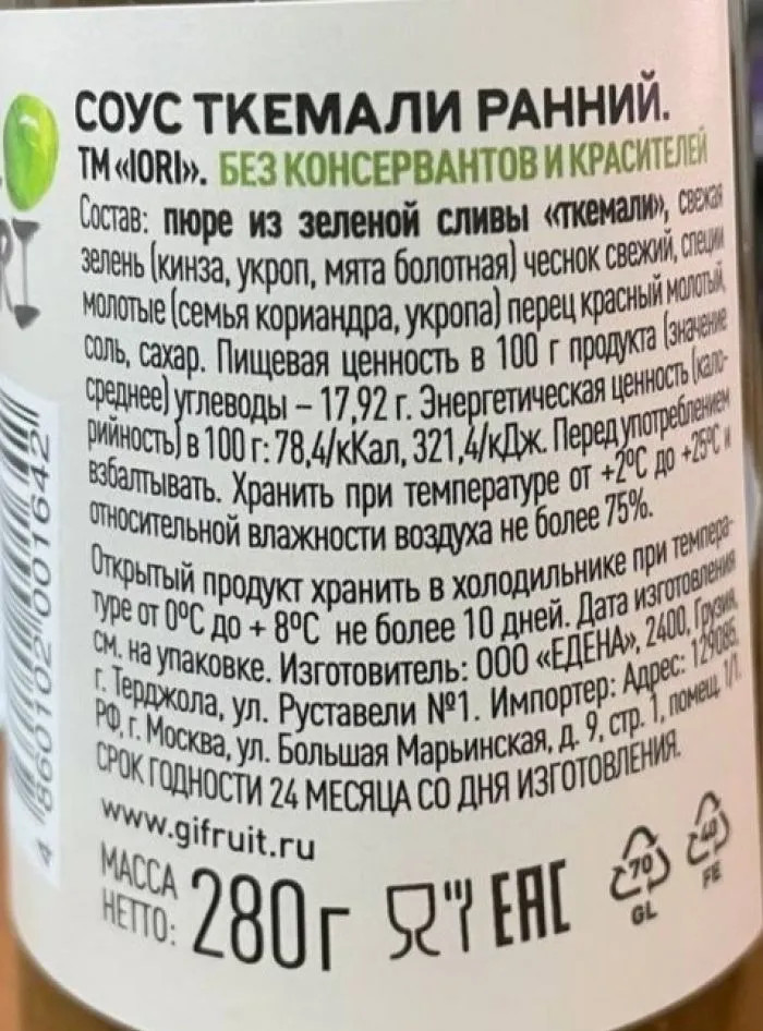 Iori Соус из зеленой сливы ранний «Ткемали»