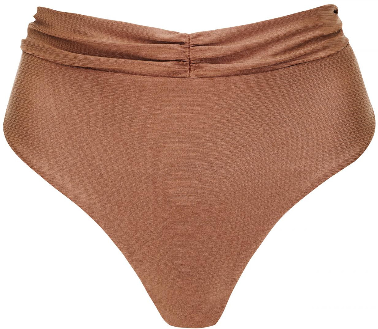 Плавки женские-бразилиана с завышенной линией талии. Широкий пояс с драпировкой. Завышенный вырез по линии бикини. Вертикальный шов на задней детали. Обработка задней детали в подворот с чистым краем.