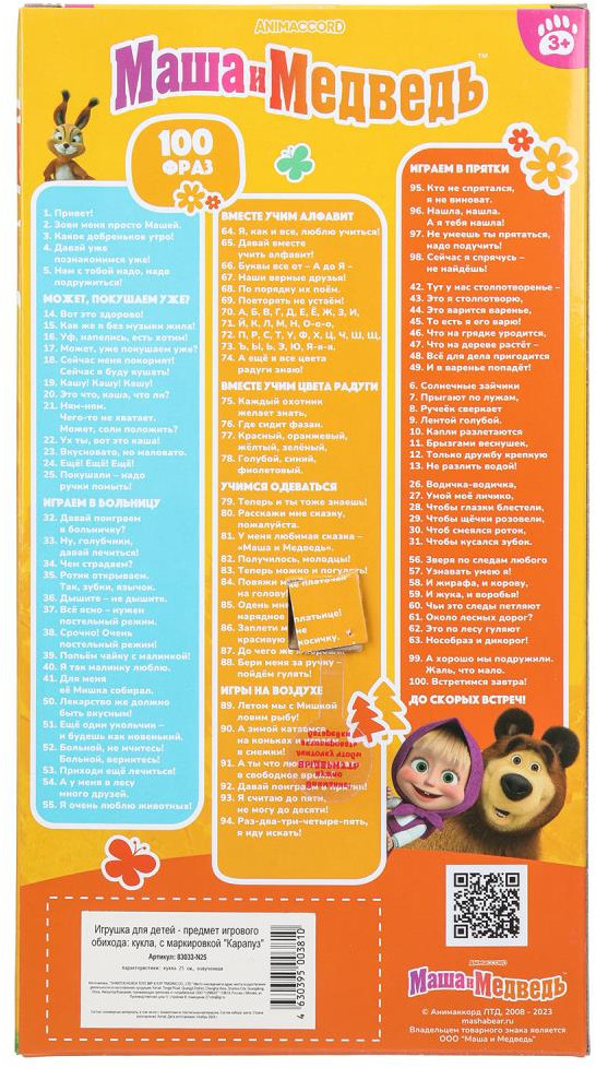 💳 Оплатить за товар можно при получении 🇰🇿 Есть бесплатная доставка по Казахстану от 1 дня 🎁 Копите бонусы с каждой покупки Озвученная кукла «Маша» ТМ «Карапуз» станет отличным подарком для маленьких поклонниц мультсериала «Маша и Медведь»: |