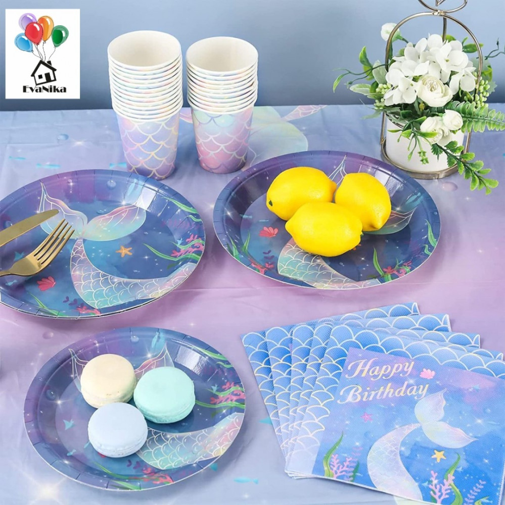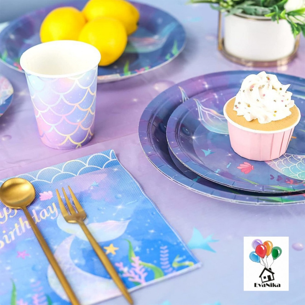 Набор одноразовой посуды в стиле «Русалка» — для волшебного праздника! Погрузитесь в сказочный подводный мир вместе с ярким набором посуды в стиле Русалки! Этот комплект идеально подойдёт для детского дня рождения, тематической вечеринки или девичника.
