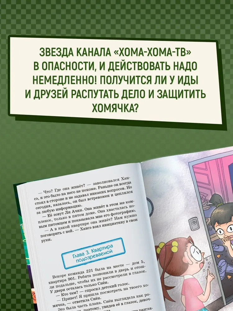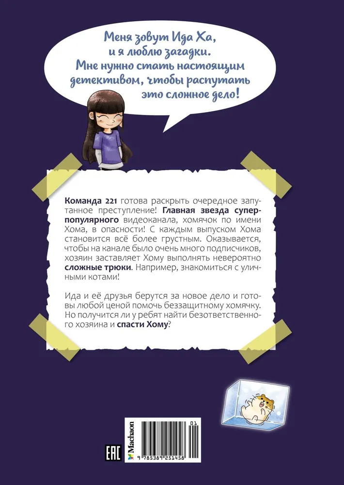 💳 Оплатить за товар можно при получении 🇰🇿 Есть бесплатная доставка по Казахстану от 1 дня 🎁 Копите бонусы с каждой покупки Серия: Ида Ха, девочка-детектив. Корейские расследования История об удивительной и очень талантливой Иде Ха, девочке-детективе из Кореи! Сочетание жанров, влюбляющих в чтение: детектив и приключения для детей и подростков. А ещё текст дополняют яркие комиксовые вставки! Почувствуйте себя настоящим Шерлоком Холмсом, раскрывая самые запутанные преступления вместе с Идой Ха! Главная звезда видеоканала «Хома-Хома-ТВ» в опасности! Хомячка по имени Хома нужно срочно спасать из рук безответственного хозяина! Ида вместе с друзьями готова начать расследование и любой ценой помочь беззащитному хомячку. Ведь юные детективы не могут поверить, что ради больших просмотров любимого питомца заставляют купаться в ванне, гулять в парке и дружить с уличными котами... Но где же искать Хому? Получится ли у ребят распутать это сложное дело? История понравится поклонникам книг «Девочка с лисьим хвостом», «Мейзи Хитчинс», «Приключения кота-детектива», «Агата Мистери» и аниме «Семья шпиона». Лёгкий слог, красочные иллюстрации и увлекательный сюжет — эта книга поможет полюбить читать! |
