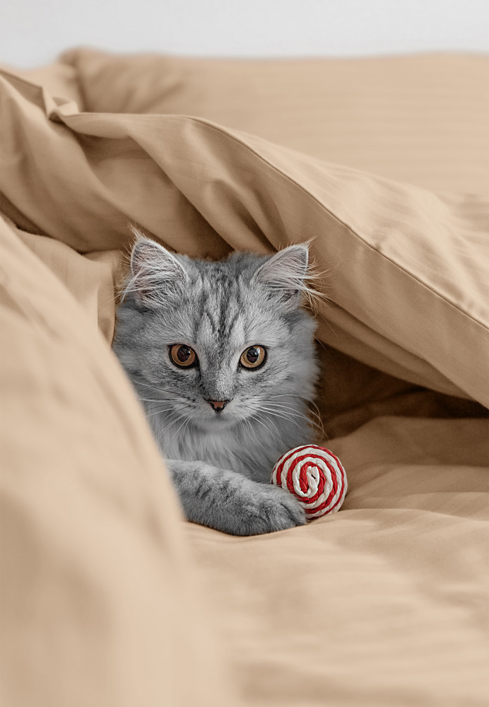 «Фирменный» признак страйпа — чередование на ткани полос матовой и блестящей фактуры. Страйп (stripe) и переводится с английского как «полоска». Такая «полосатая» структура делает страйп очень прочной и износостойкой тканью, которую можно стирать даже при высоких температурах. По ощущениям страйп самый теплый из всех видов ткани, а всё из-за сложного переплетения: ткань удерживает воздух и сохраняет тепло, выделяемое телом во время сна. В России только мы производим страйп и наносим на него дополнительный рисунок.