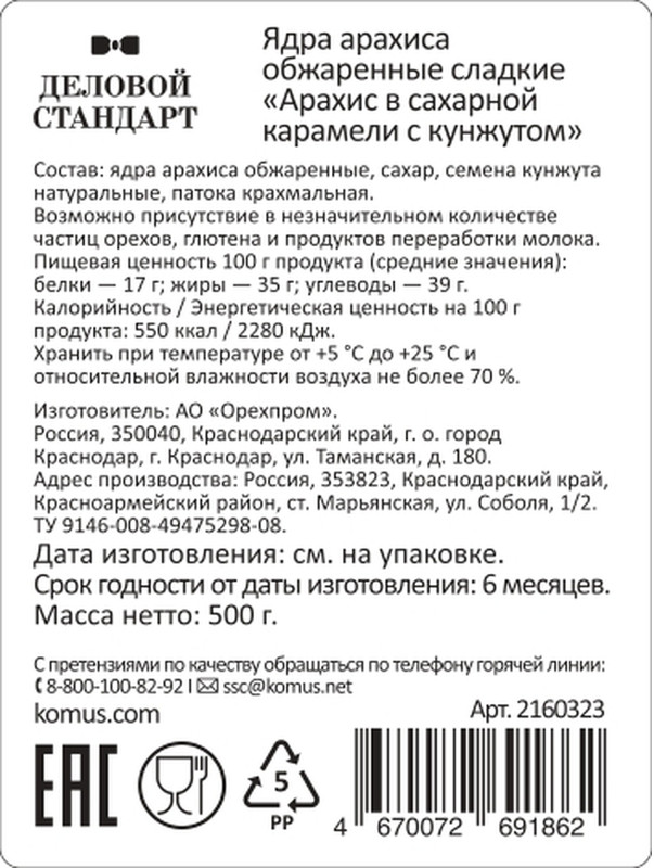 Деловой стандарт Арахис жареный очищенный в карамели с кунжутом