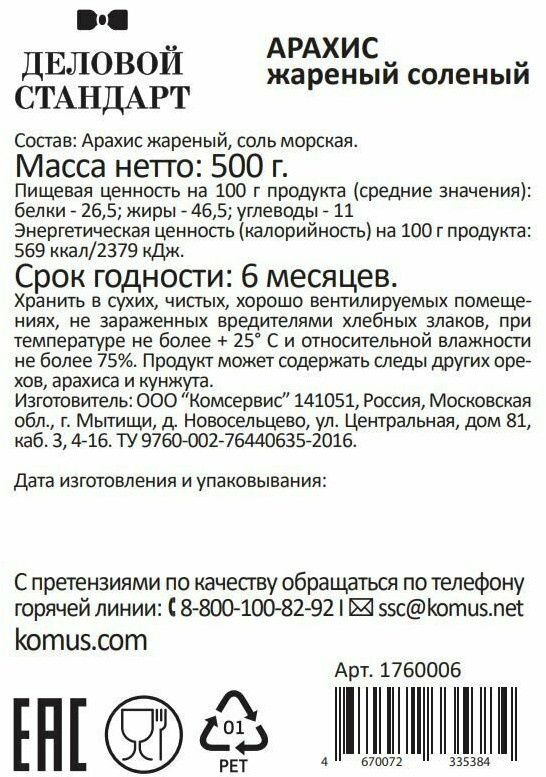 Деловой стандарт Арахис жареный соленый