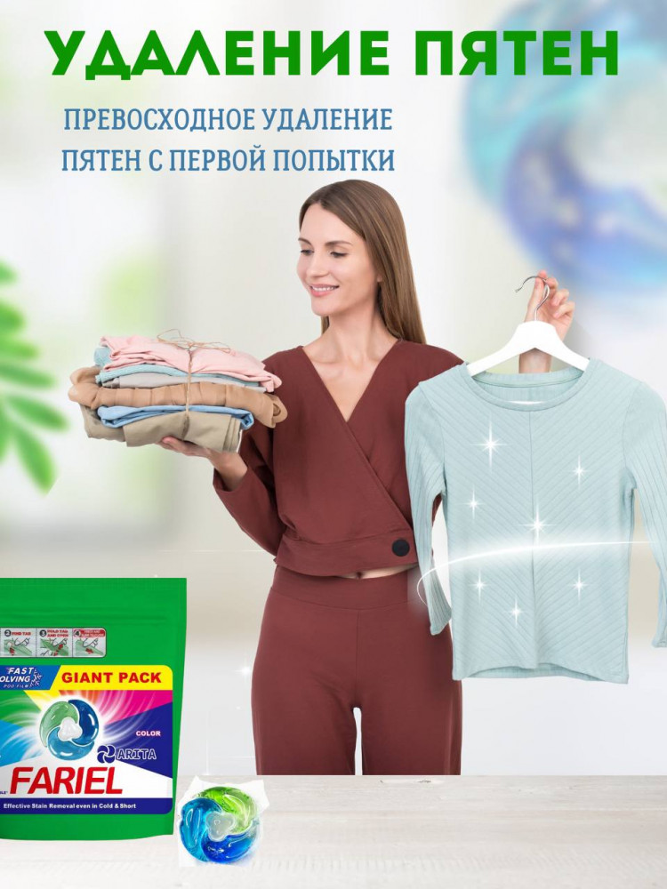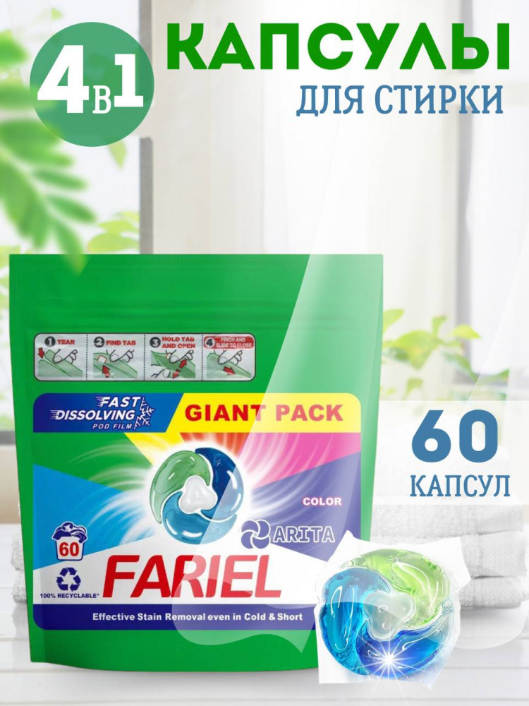С капсулами для стирки 4 в 1 вы получаете надежное и удобное средство, которое сделает вашу одежду безупречно чистой, мягкой и приятно ароматизированной, как если бы вы использовали порошок с кондиционером. Эти капсулы с кондиционером обеспечивают идеальный уход за вашими любимыми вещами. Позвольте себе наслаждаться качеством и легкостью стирки с Fariel!