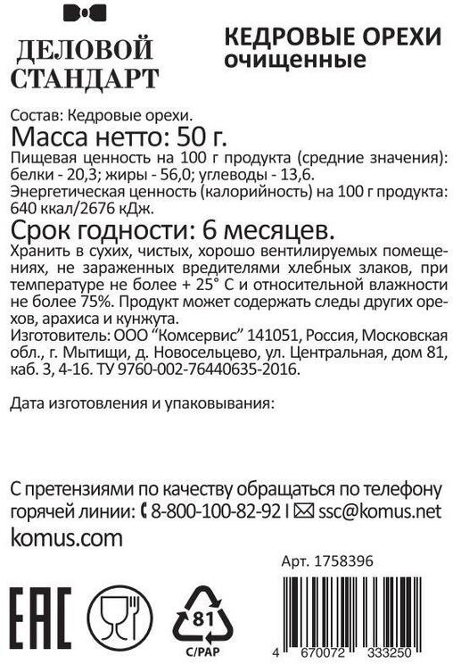 Деловой стандарт Орех кедровый-25% +74