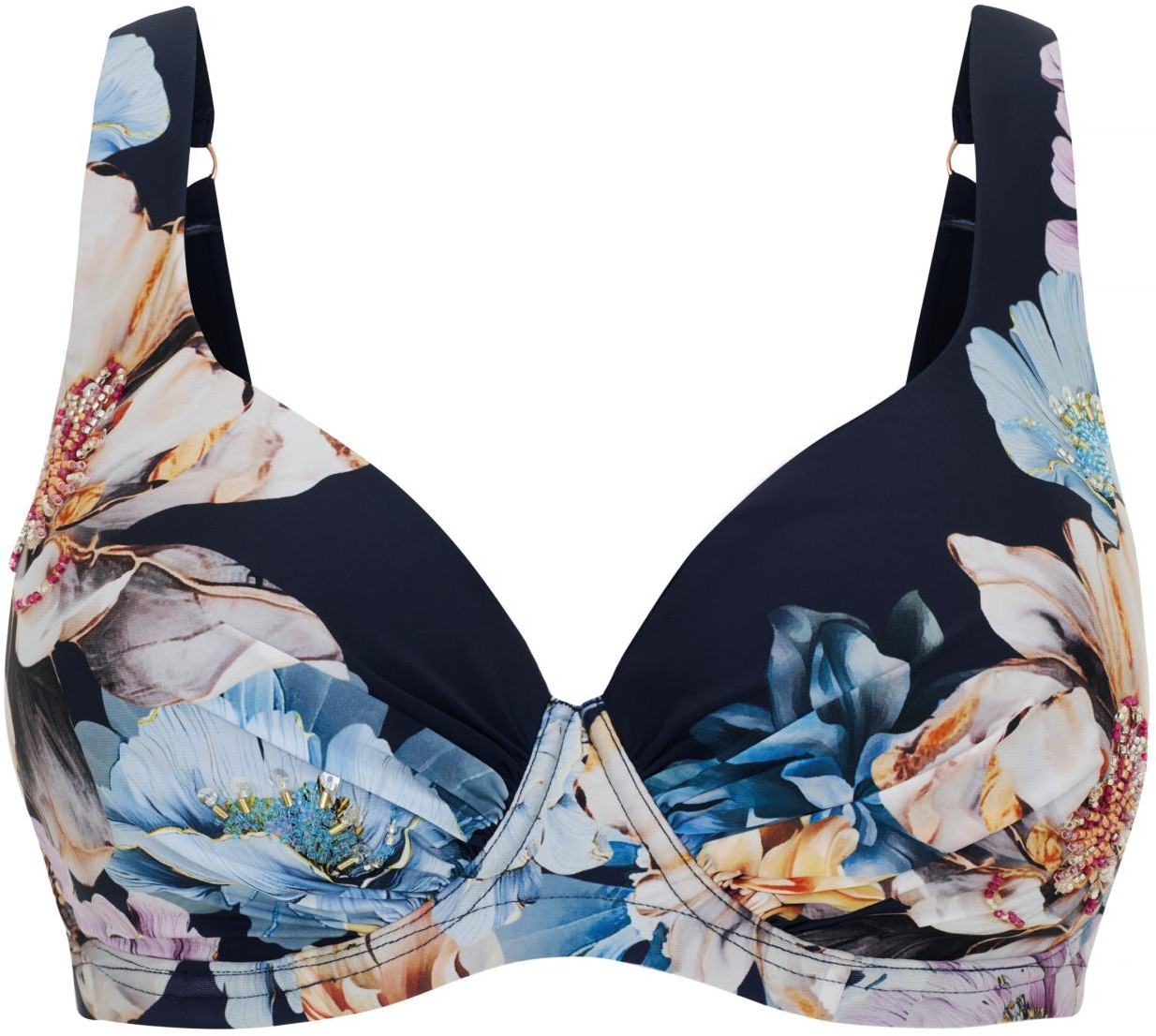 Верх купальника с формованными чашками на косточках. Подойдет для обладательниц пышных форм. Углубленная линия декольте. Широкие регулируемые бретели с поролоновой вставкой. На спине застежка. На чашках «Placement» принт.