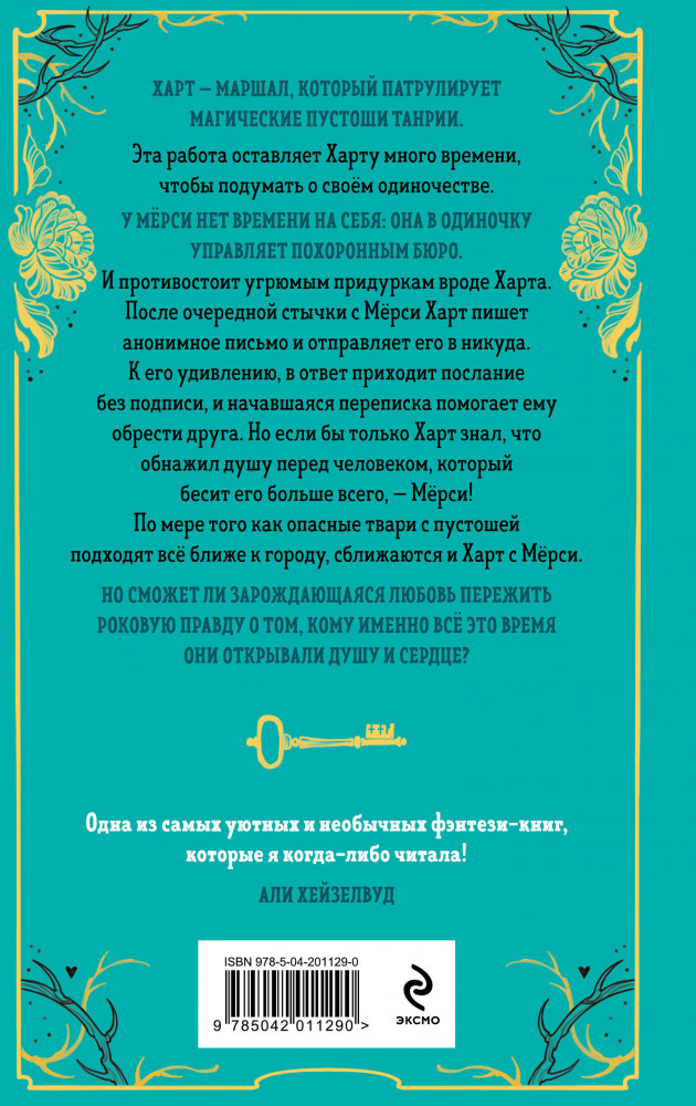 💳 Оплатить за товар можно при получении 🇰🇿 Есть бесплатная доставка по Казахстану от 1 дня 🎁 Копите бонусы с каждой покупки Серия: Дела любовные и похоронные. Душевное ромэнтези Харт — маршал, который патрулирует магические пустоши Танрии. Эта работа оставляет Харту много времени, чтобы подумать о своём одиночестве. У Мёрси нет времени на себя: она в одиночку управляет похоронным бюро и противостоит угрюмым придуркам вроде Харта. После очередной стычки с Мёрси Харт пишет анонимное письмо и отправляет его в никуда. К его удивлению, в ответ приходит послание без подписи, и начавшаяся переписка помогает ему обрести друга. Но если бы только Харт знал, что обнажил душу перед человеком, который бесит его больше всего, — Мёрси! По мере того как опасные твари с пустошей подходят всё ближе к городу, сближаются и Харт с Мёрси. Но сможет ли зарождающаяся любовь пережить роковую правду о том, кому именно всё это время они открывали душу и сердце? |