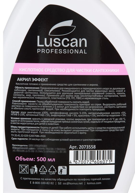 Luscan Professional Средство для сантехники чистящее «Akril Effect»