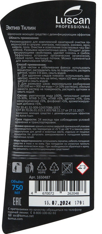 Luscan Professional Средство для уборки санитарных помещений «Active Тclean»-35% +17
