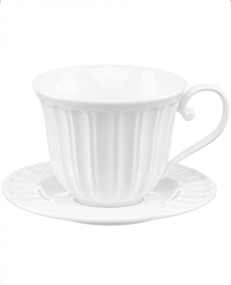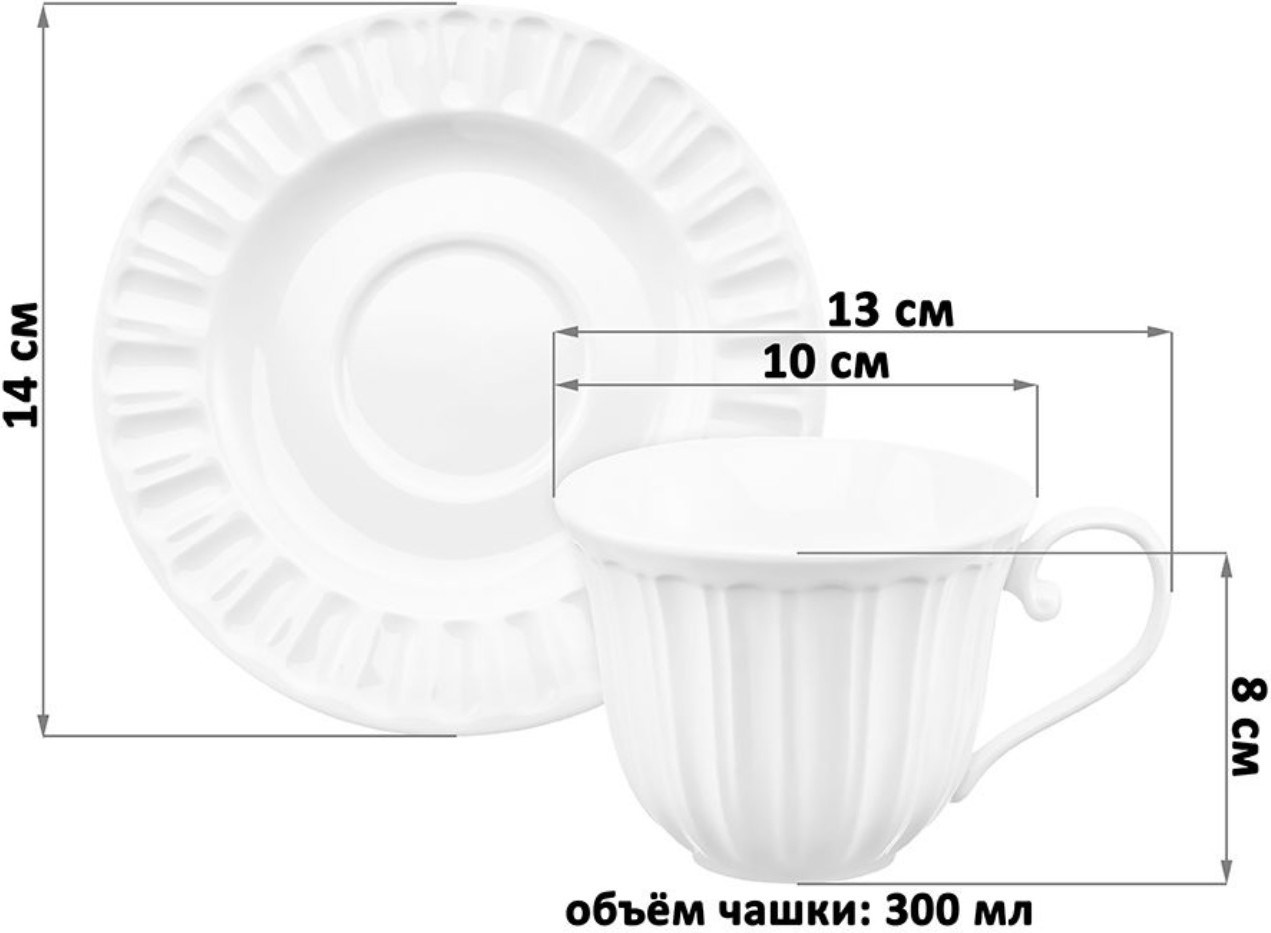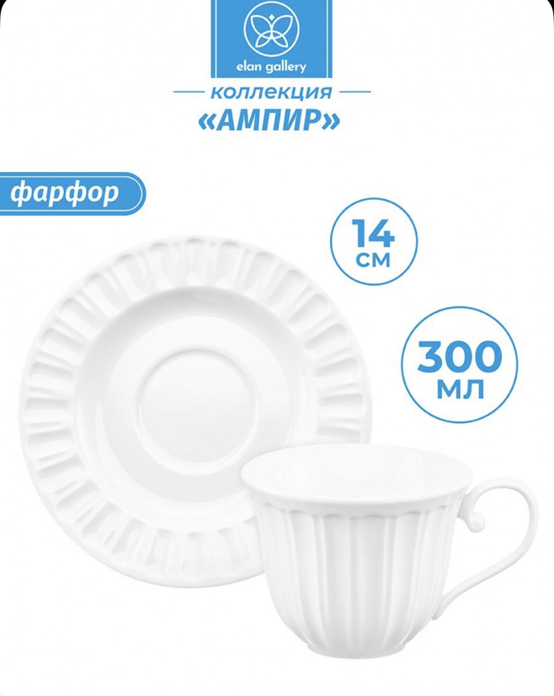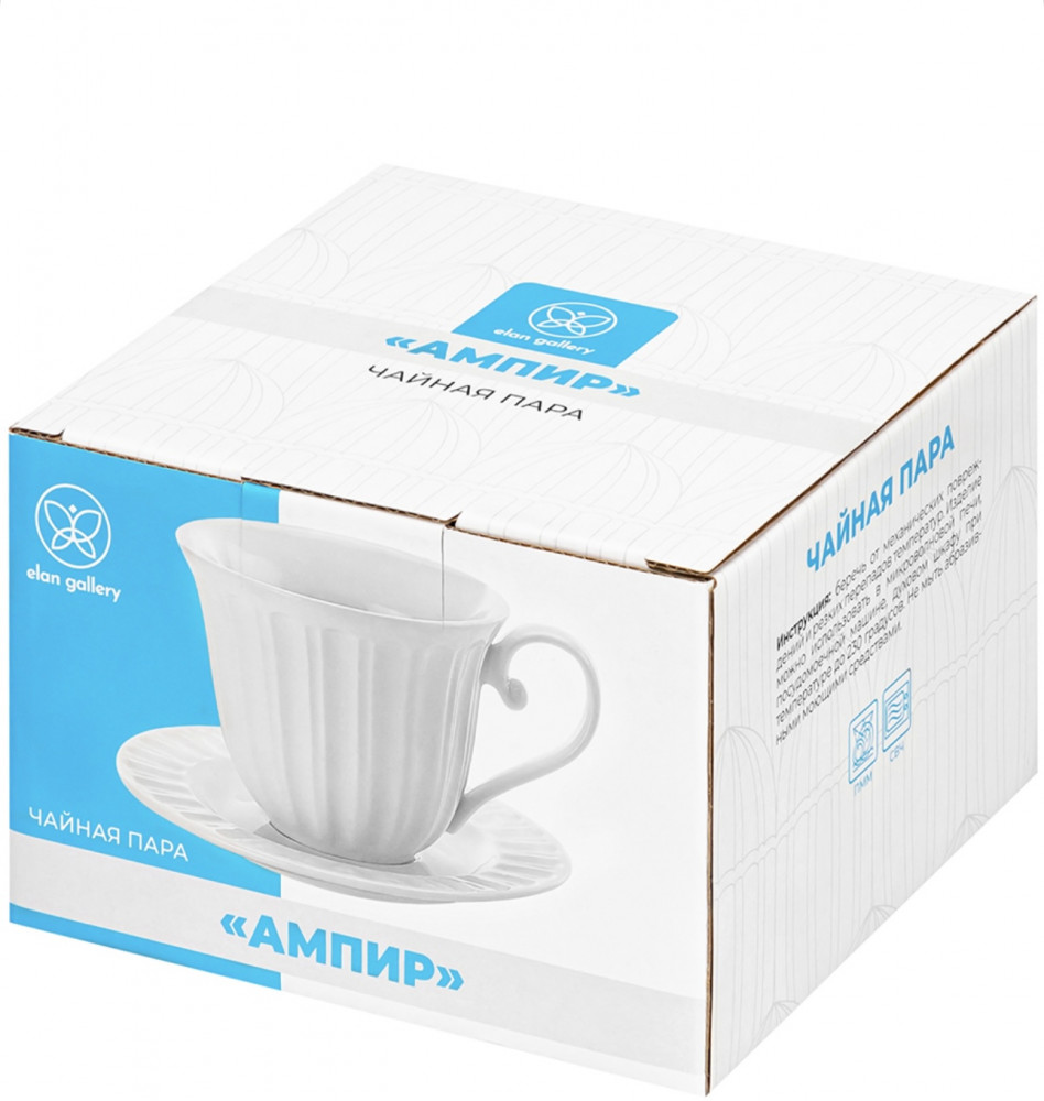 Чайная пара Elan Gallery «Ампир» выполнена из фарфора и украшена рельефным узором. В комплект входят чашка размером 13×10×8 см объёмом 300 мл и блюдце размером 14×14×1,5 см. Набор можно использовать как чайный или кофейный — он подойдёт ценителям напитков, которые любят пить из красивой и необычной посуды. Интересная чашка с удобной ручкой украсит стол стильным дизайном как в праздник, так и в будни. Идеальный вариант, чтобы согреться горячим чаем зимой или освежиться лимонадом летом. Блюдце можно использовать как подставку под чашку, создавая изящную сервировку, либо положить на него десерт — кусочек торта, пирожное, домашнюю выпечку. Также тарелочка подойдёт для закусок: сырной или мясной нарезки, свежих овощей, зелени, бутербродов или кусочков шашлыка — отличный компаньон к чашечке кофе. Фарфор отличается от керамики повышенной плотностью: он не впитывает цвет напитков и не деформируется от влаги, в отличие от более пористой керамической посуды. Не рекомендуется использовать абразивные моющие средства. Посуда подходит для микроволновой печи и посудомоечной машины. Поставляется в стильной картонной упаковке и станет оригинальным подарком для близких.
