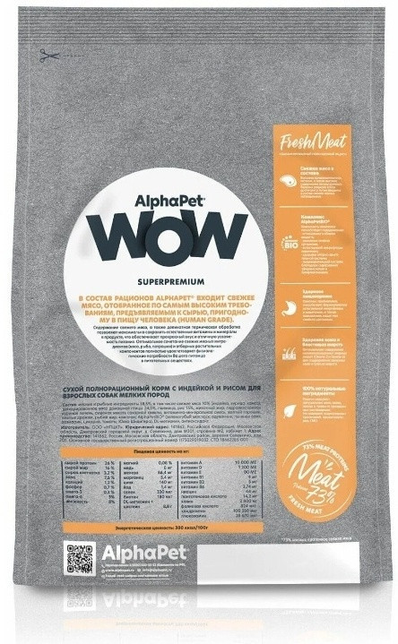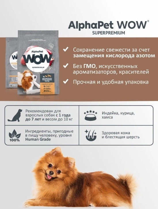 AlphaPet Корм сухой для собак взрослых мелких пород с индейкой и рисом