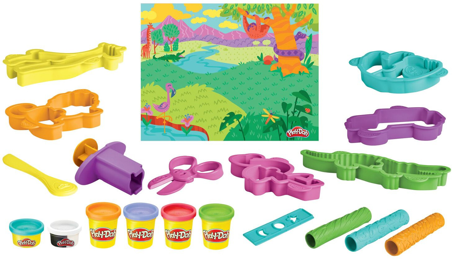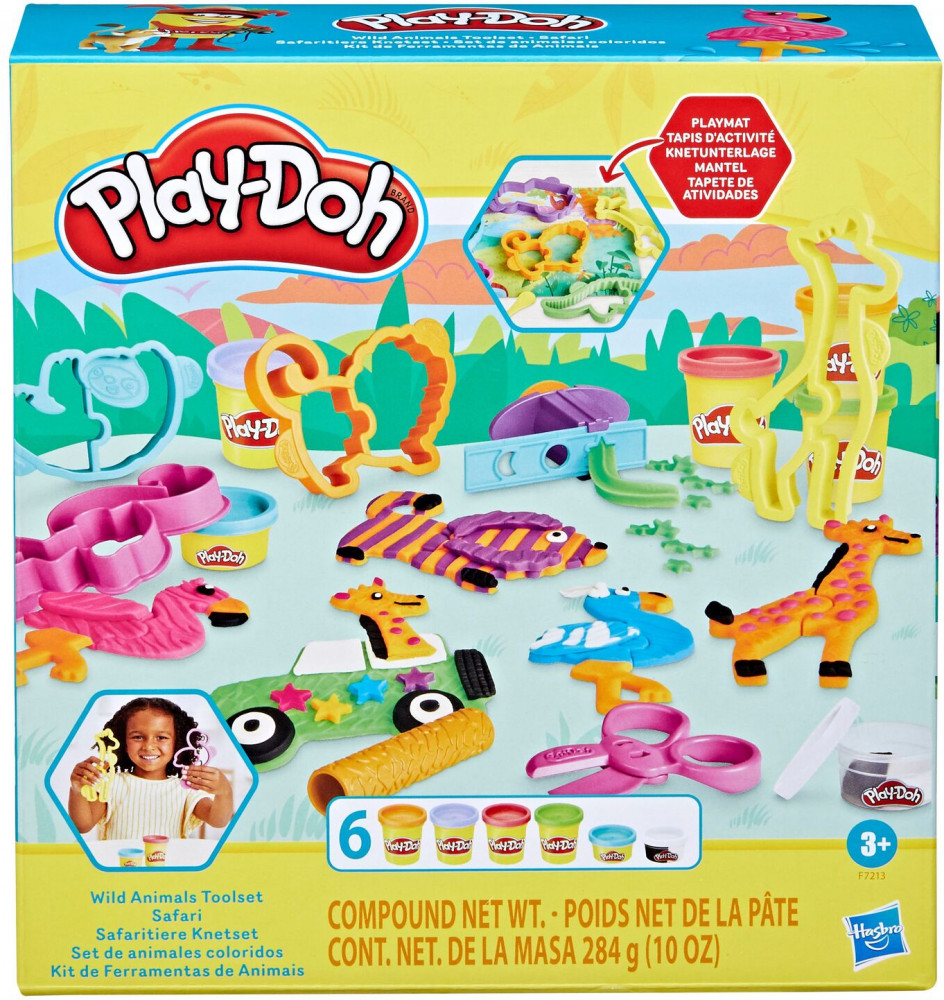 Погрузитесь в мир дикой природы с набором Play-Doh Дикие животные! Создайте гигантскую жирафу, огромного крокодила или даже джип с помощью 6 крупных форм, а затем украсьте и настройте их, используя ролики с узорами, экструдер, ножницы и игрушечный нож. Головы и хвосты животных также можно комбинировать для создания диких, забавных и уникальных творений! Этот набор Play-Doh включает 6 банок массы для лепки разных цветов. Дети будут наслаждаться воображаемыми дикими приключениями, используя тематический игровой коврик!