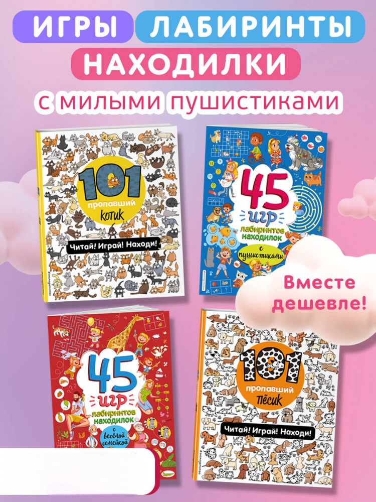 В данный момент этот товар отсутствует в продаже. Возможно, у нас найдется аналогичный или похожий товар здесь. Серия: 101 пропажа. Игры, головоломки и увлекательные истории для настоящих поисковичков Ты обожаешь игры, загадки и головоломки? Тогда этот комплект точно не даст тебе заскучать! Здесь ты найдешь милые раскраски, прикольные рисовалки, запутанные лабиринты, судоку, цифровые коды и много интересных заданий! А еще тебя ждут забавные истории про смешных зверят. Удобный формат сборников и яркое, красочное оформление позволят по максимуму погрузиться в игры и весело провести время. Книги понравятся как мальчикам, так и девочкам и станут замечательным подарком на день рождения или любой другой праздник. Читай, играй и развлекайся вместе с милыми и очаровательными пушистиками. |