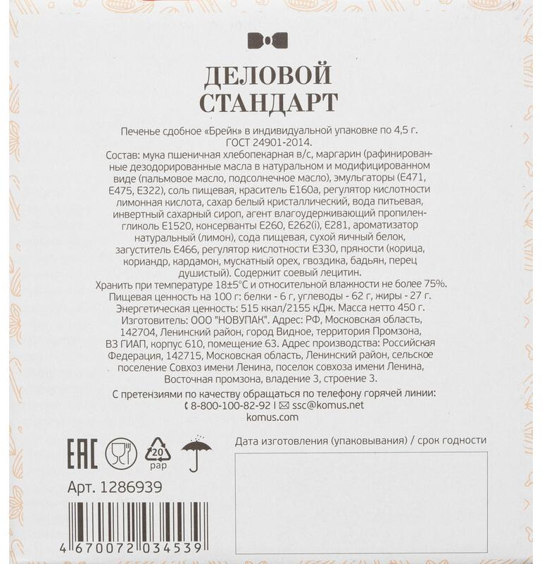 Деловой стандарт Печенье сдобное с пряностями