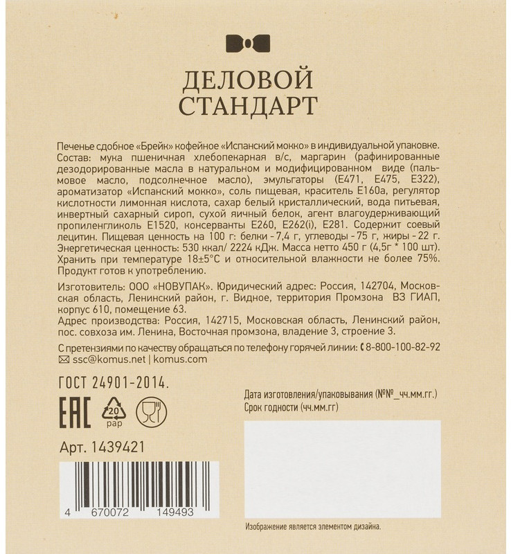 Деловой стандарт Печенье сдобное «Испанский мокко»
