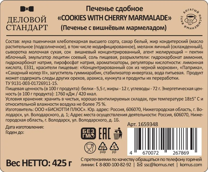 Деловой стандарт Печенье сдобное с вишневым мармеладом «Cookies with cherry marmalade»