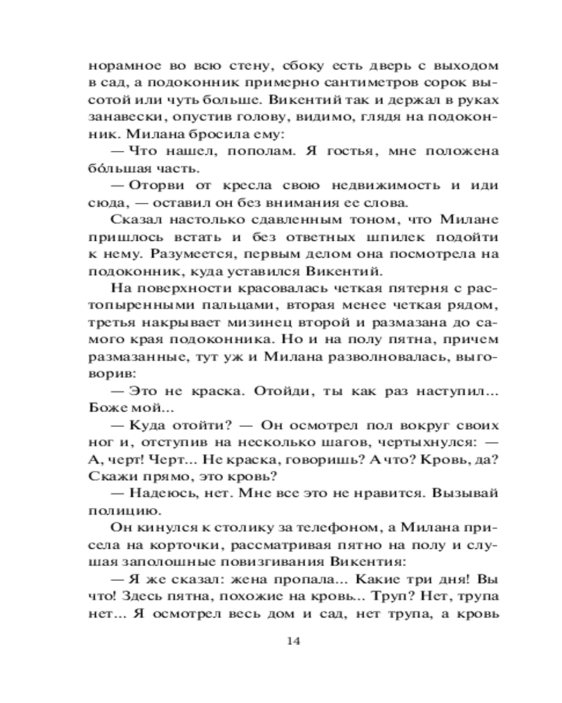 💳 Оплатить за товар можно при получении 🇰🇿 Есть бесплатная доставка по Казахстану от 1 дня 🎁 Копите бонусы с каждой покупки Серия: Детектив в багровых тонах (обложка) Рассчитывая провести в узком семейном кругу приятный вечер, Викентий с сестрой жены Миланой приезжают в загородный дом. К своему удивлению и тревоге, они не находят в доме хозяйку, но на полу видят бурые пятна, напоминающие кровь... Полиция отстраняется от расследования под предлогом «нет тела — нет дела»! Муж и сестра пропавшей решают самостоятельно ее искать... Сталкиваются с чередой загадочных событий и начинают подозревать друг друга... в исчезновении Нии... |