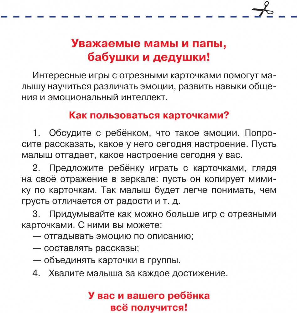 💳 Оплатить за товар можно при получении 🇰🇿 Есть бесплатная доставка по Казахстану 🎁 Копите бонусы с каждой покупки Серия: Карточки для малышей: запуск речи Развивающая книга с отрезными карточками «Эмоции» поможет ребёнку научиться понимать свои эмоции, улучшит его общение с друзьями и взрослыми, поспособствует развитию эмоционального интеллекта вашего малыша. |