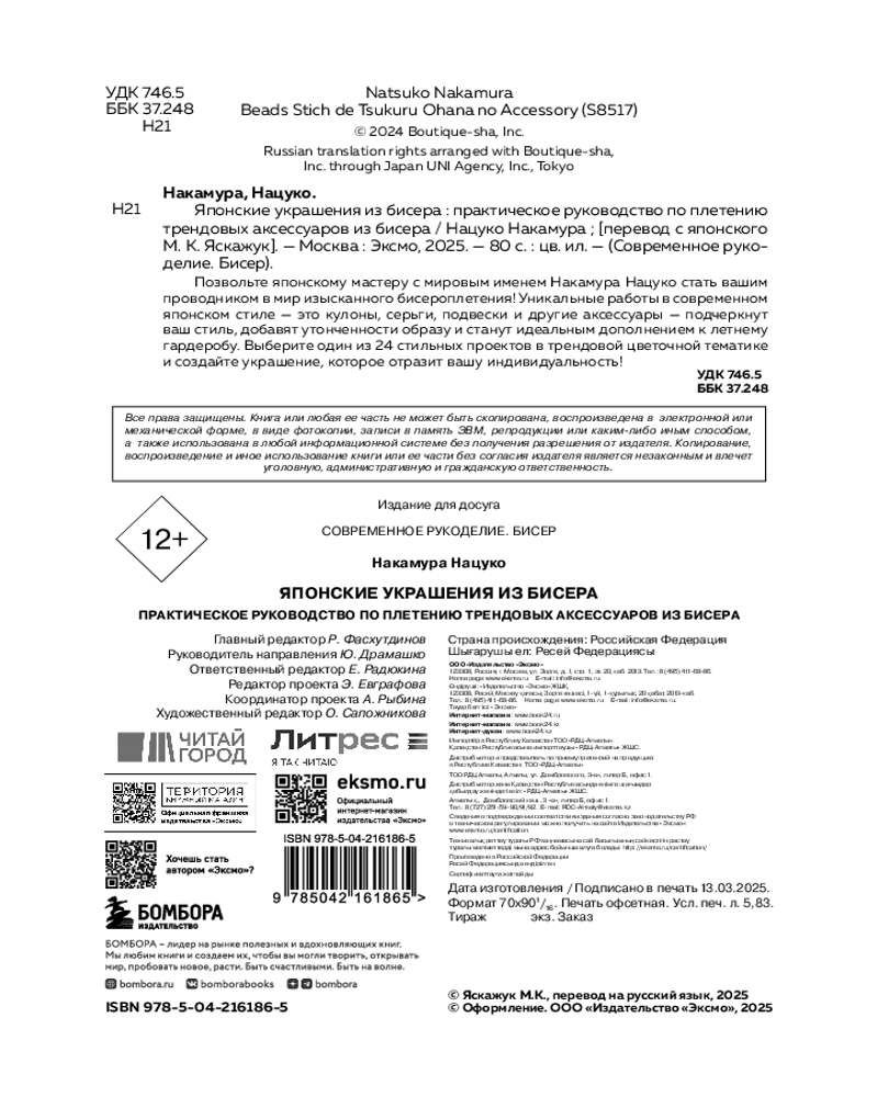 | Японские украшения из бисера. Практическое руководство по плетению трендовых аксессуаров из бисера Накамура Нацуко +105 (бонусов)