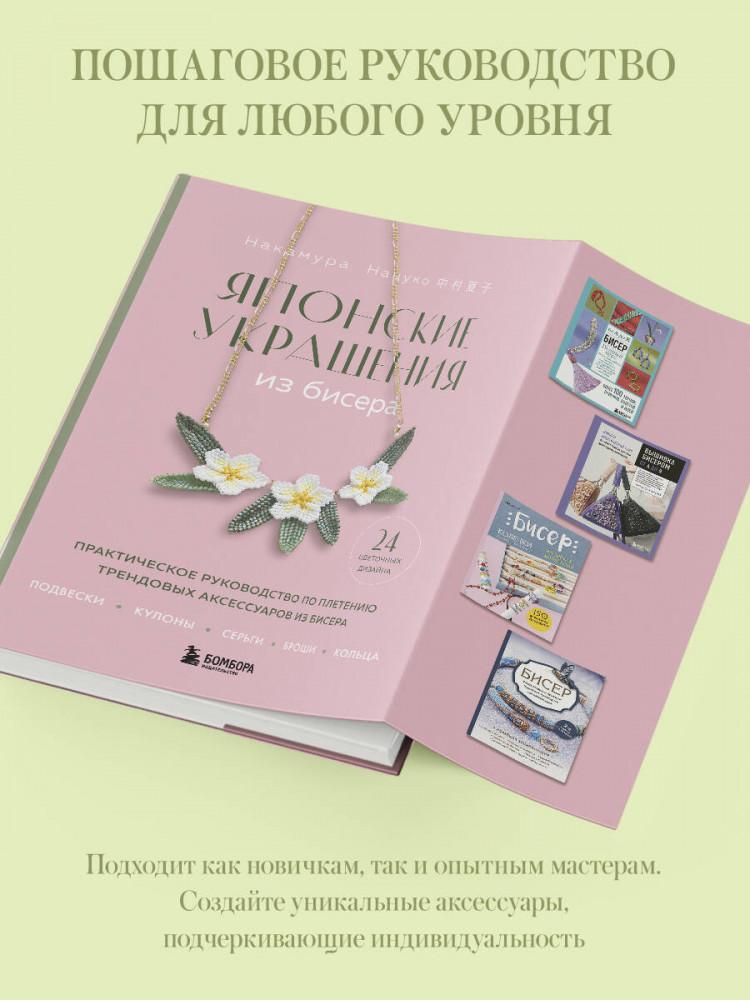 Позвольте японскому мастеру с мировым именем Накамура Нацуко стать вашим проводником в мир изысканного бисероплетения! Уникальные работы в современном японском стиле — это кулоны, серьги, подвески и другие аксессуары, которые подчеркнут ваш стиль, добавят утонченности образу и станут идеальным дополнением к летнему гардеробу.