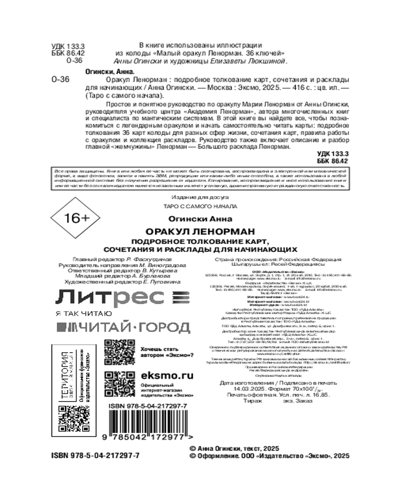 💳 Оплатить за товар можно при получении 🇰🇿 Есть бесплатная доставка по Казахстану от 1 дня 🎁 Копите бонусы с каждой покупки Серия: Таро с самого начала Простое и понятное руководство по оракулу Марии Ленорман от Анны Огински, специалиста по мантическим системам и автора популярных книг-самоучителей по оракулу Ленорман и Таро! В этой книге вы найдете все, чтобы познакомиться с легендарной колодой для гаданий и начать самостоятельно читать карты. |