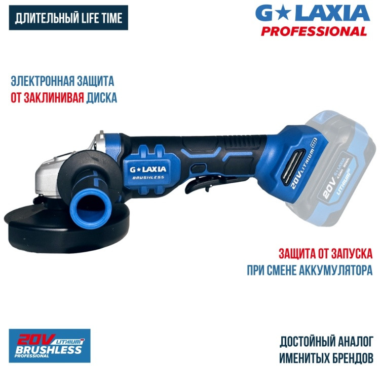 Galaxia Шлифмашина угловаяВ данный момент этот товар отсутствует в продаже. Возможно, у нас найдется аналогичный или похожий товар здесь. Угловая шлифовальная машина аккумуляторная от бренда Galaxia для резки металла, дерева, бетона, керамической плитки. Для профессионального применения. Модель выполнена в тонком корпусе для удобства эксплуатации, оснащена высокопроизводительным бесщеточным двигателем, развивающим частоту вращения до 8000 об/минуту. Алюминиевый корпус редуктора обеспечивает лучшее охлаждение мотора. Мягкая основная рукоятка повышает комфорт пользования, дополнительная рукоятка улучшает захват и контроль машины. Защитный кожух с функцией быстрого съема предотвращает попадание на оператора иск и осколков. |