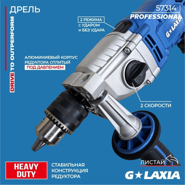 Galaxia ДрельВ данный момент этот товар отсутствует в продаже. Возможно, у нас найдется аналогичный или похожий товар здесь. Дрель — это электроинструмент, предназначенный для сверления отверстий в различных материалах, таких как дерево, металл, пластик, бетон и кирпич. В зависимости от модели и комплектации дрель может использоваться также для завинчивания/вывинчивания шурупов, шлифовки, размешивания строительных смесей и других задач. |