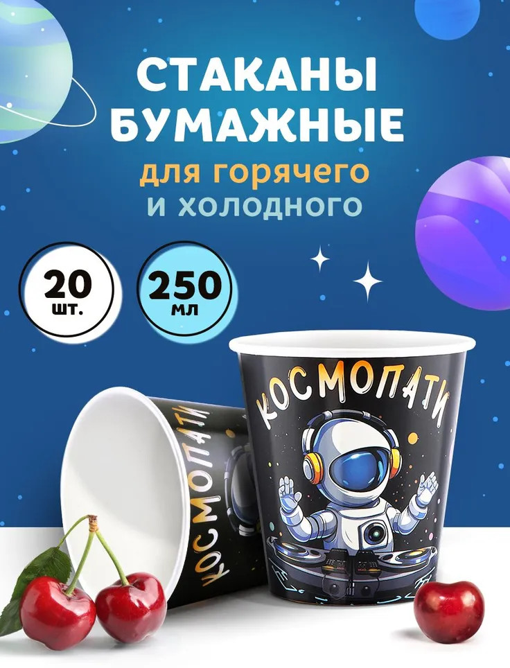 Paterra Набор стаканов бумажных «Космопати»+85