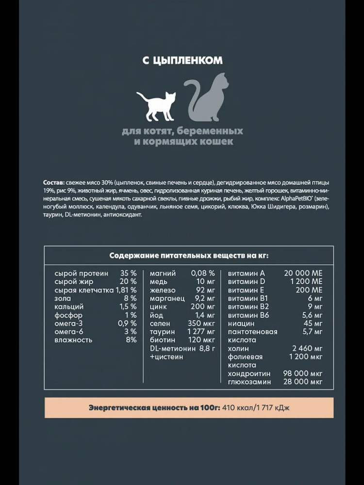 AlphaPet Корм для кормящих кошек и котят со вкусом цыпленка