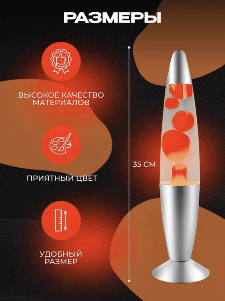 Лава-лампа, 35 см — стиль и уют в одном светильнике! Добавьте волшебства в ваш интерьер с помощью стильной лава-лампы! Мягкое движение воска внутри колбы завораживает, расслабляет и создаёт уютную атмосферу. Идеально подойдёт для спальни, гостиной, рабочего кабинета или в подарок.
