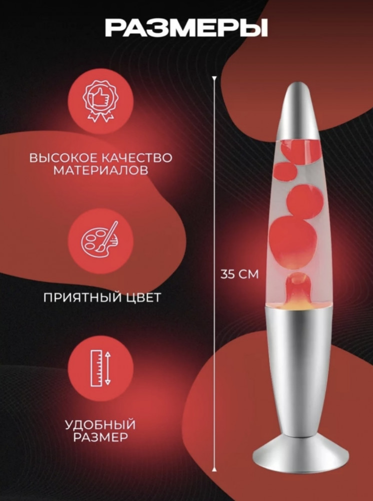 Лава-лампа, 35 см — стиль и уют в одном светильнике! Добавьте волшебства в ваш интерьер с помощью стильной лава-лампы! Мягкое движение воска внутри колбы завораживает, расслабляет и создаёт уютную атмосферу. Идеально подойдёт для спальни, гостиной, рабочего кабинета или в подарок.
