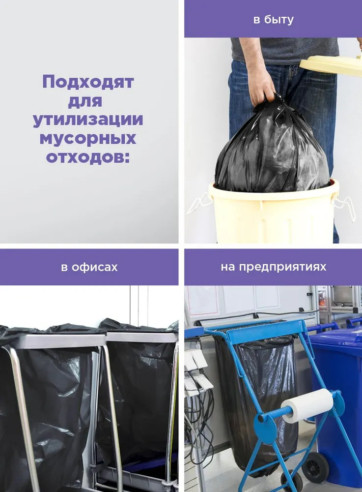 💳 Оплатить за товар можно при получении 🇰🇿 Есть бесплатная доставка по Казахстану от 1 дня 🎁 Копите бонусы с каждой покупки Мешки для мусора на 160 литров повышенной прочности подходят для утилизации мусорных отходов: в быту, в офисах, на предприятиях. Мешки подойдут для переезда и транспортировки одежды, упаковки коробок с обувью, подойдут для использования в саду и огороде, сбора сорняков, вывоза опавших садовых листьев. Пакеты для мусора легко надеваются на мусорный бак и также легко снимаются при наполнении. |