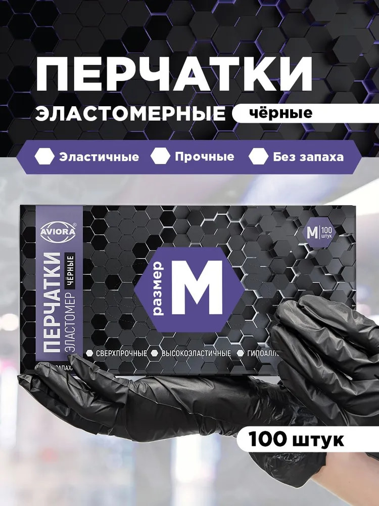 Перчатки одноразовые Aviora — надежная защита рук от загрязнений и влаги, неагрессивных чистящих и моющих средств. Одноразовые перчатки из эластомера произведены из технологичного материала: термопластичный эластомер (ТПЭ). Эластомер не впитывает влагу, запахи, не взаимодействует с химическими средствами. В отличие от одноразовых полиэтиленовых перчаток перчатки из эластомера более прочные. Эластомер перчатки лучше тянутся, чем виниловые, и поэтому могут стать им отличной альтернативой. Одноразовые перчатки из термопластичного эластомера легко надеть на руку, причем перчатки подходят как под правую, так и левую руки. Благодаря универсальной размерной сетке эти перчатки можно использовать как перчатки для женщин, так и для мужчин. После надевания перчатки аккуратно потянуть за манжету с разных сторон, таким образом манжета закрепится на запястье, а перчатка не будет спадать с руки.