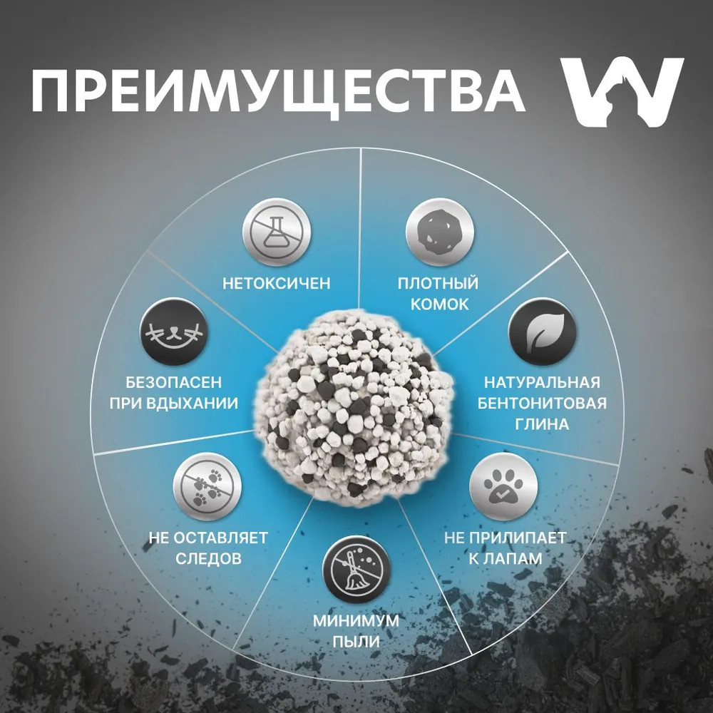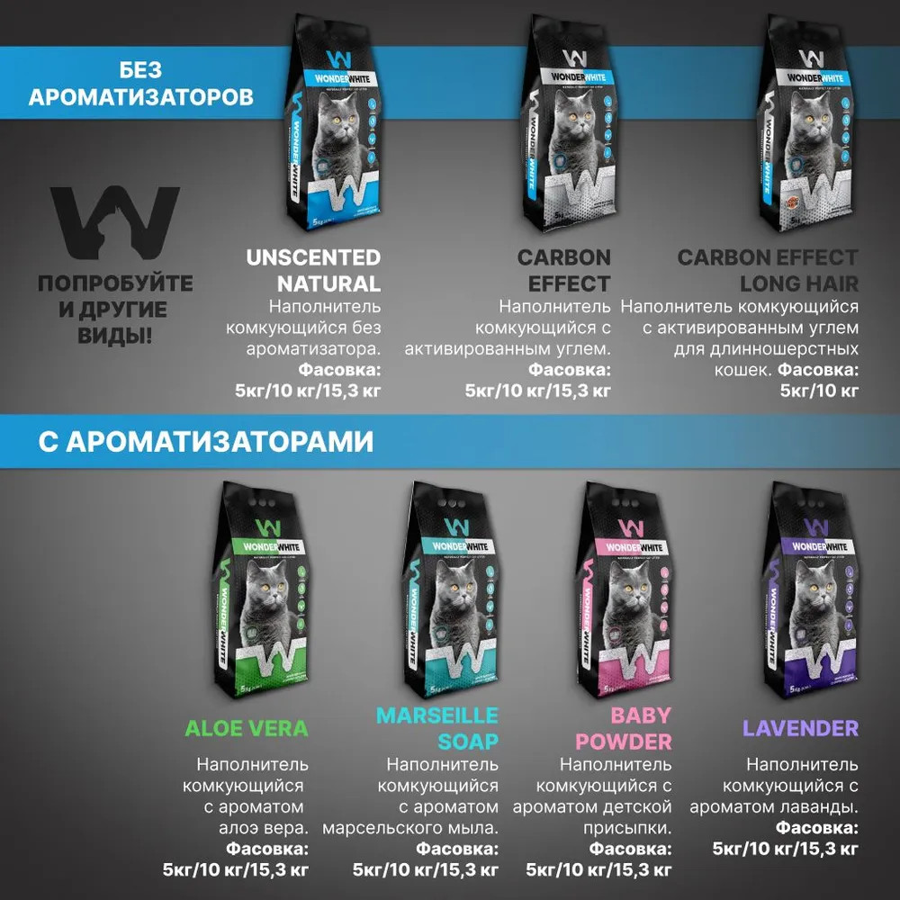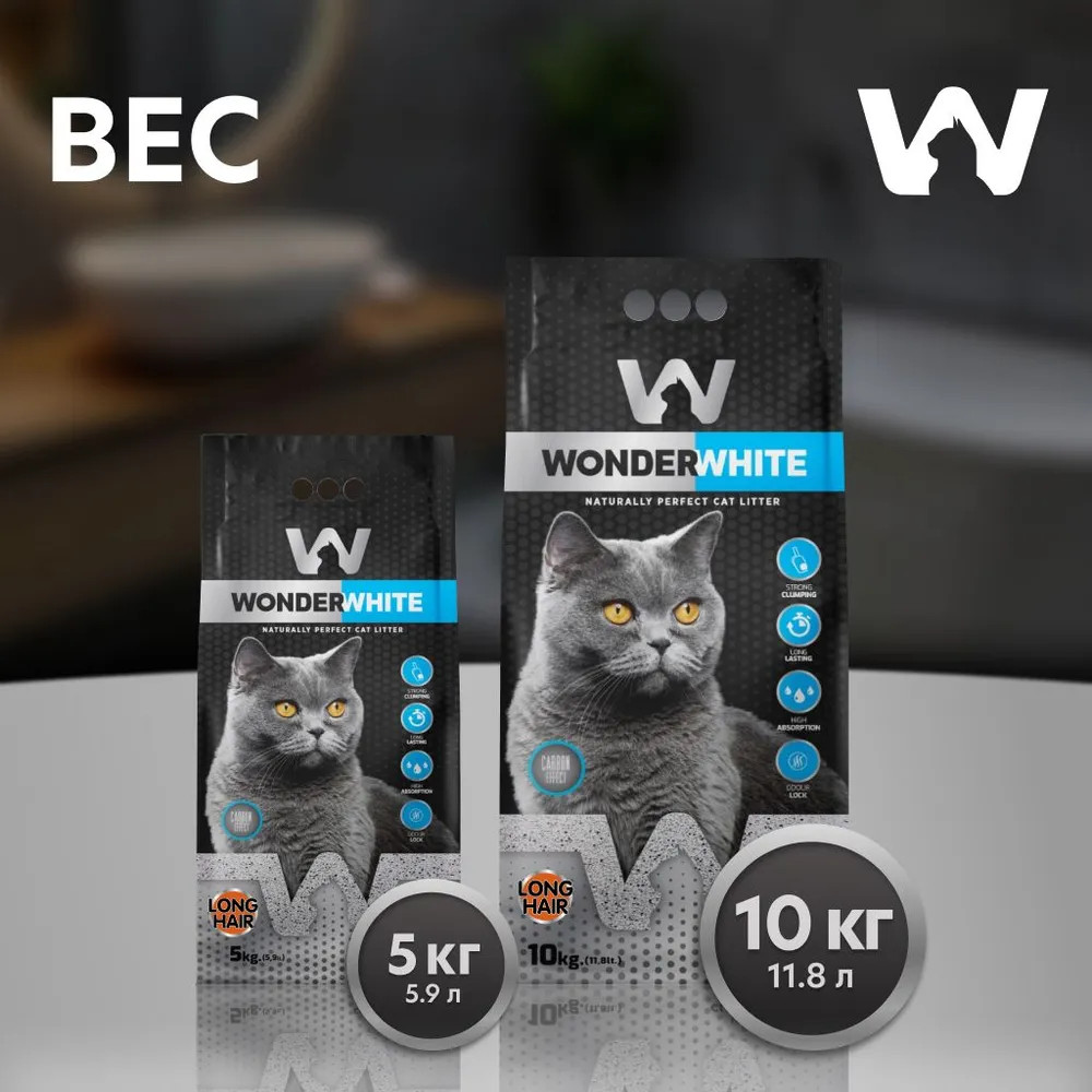 Wonder White Наполнитель для туалета длинношерстных кошек комкующийся с активированным углем