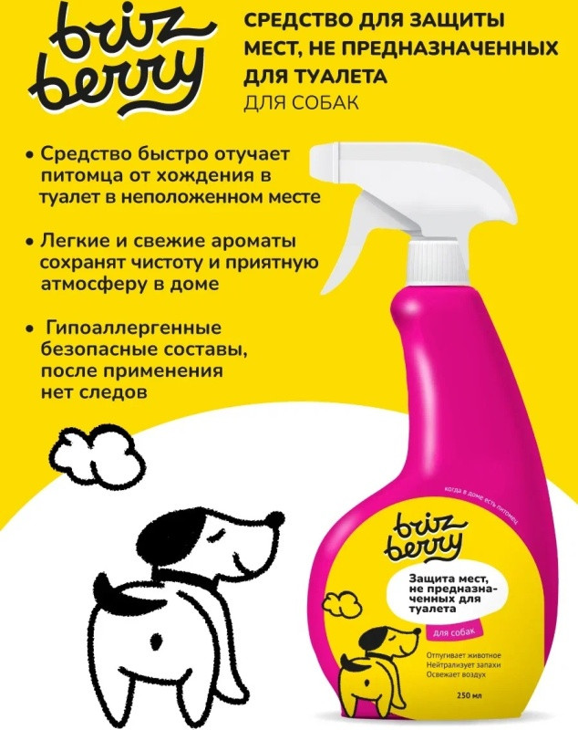 Brizberry Спрей «Защита мест, не предназначенных для туалета собак»В данный момент этот товар отсутствует в продаже. Возможно, у нас найдется аналогичный или похожий товар здесь. Спрей «Защита мест, не предназначенных для туалета собак» помогает отучить вашего питомца ходить в туалет в непредназначенных для этого местах. Для того чтобы изменить привычку животного справлять нужду в неположенных местах, нужно предоставить ему место для справления естественных надобностей, которое следует содержать в чистоте. Заметив признаки беспокойства, связанные со справлением естественных нужд, следует перенести питомца на место, запланированное под туалет. Когда животное справит нужду в положенном месте, следует активно похвалить его и погладить. На данном этапе внимание — самая большая награда. |