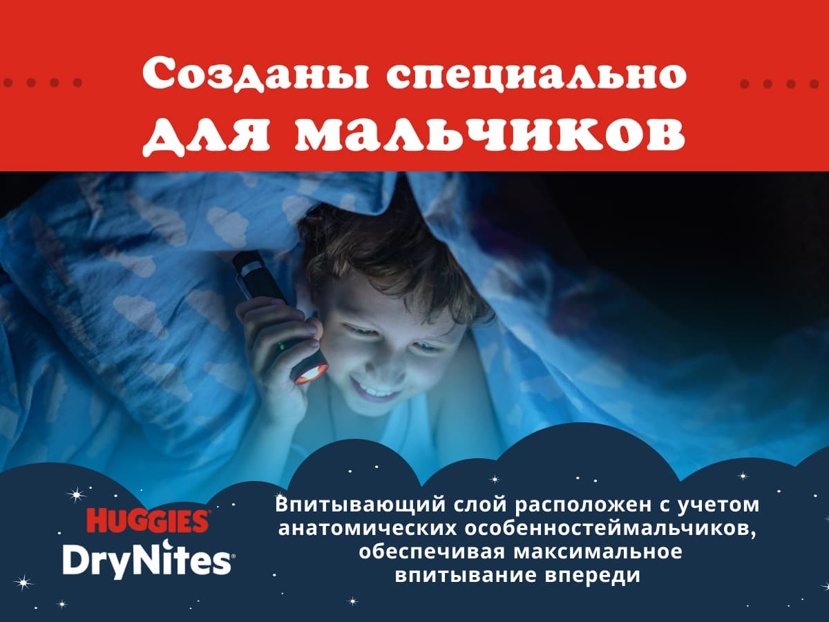 Huggies Трусики-подгузники для мальчиков 4-7 лет «DryNites»