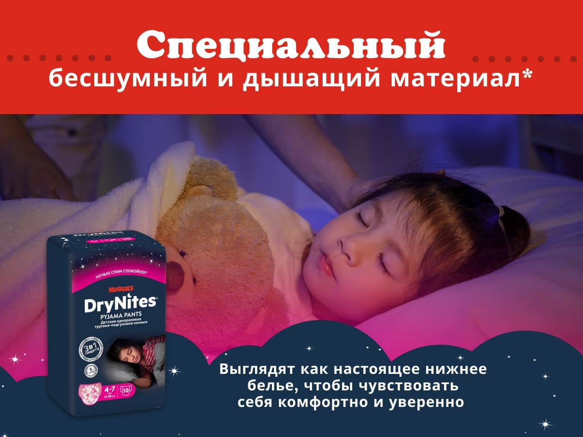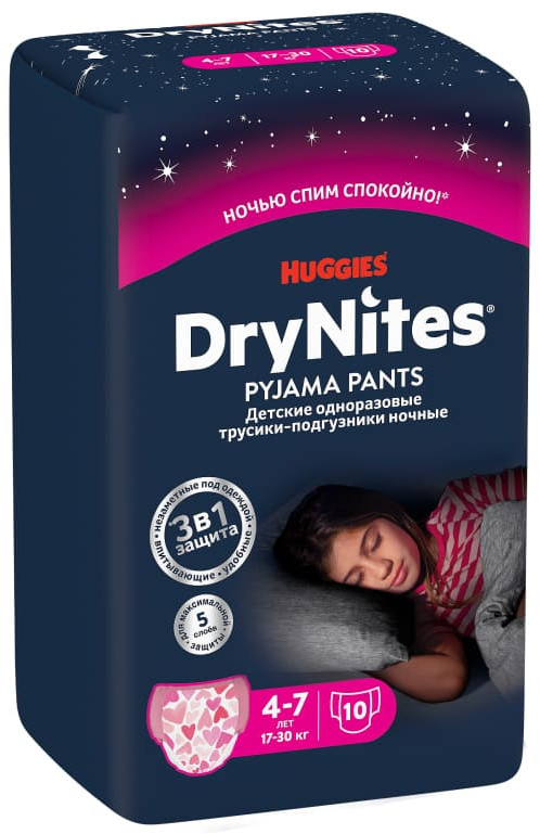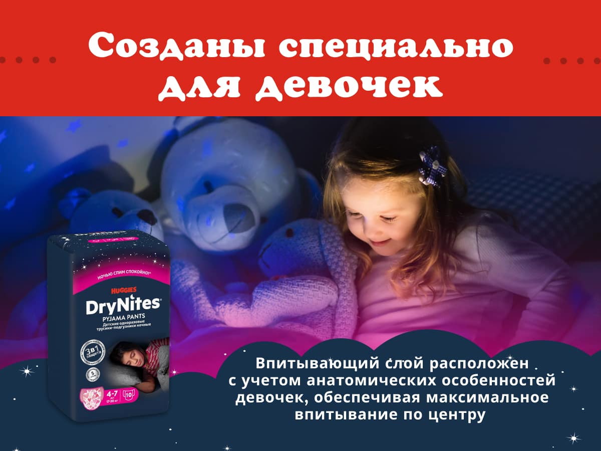 Huggies Трусики-подгузники для девочек 4-7 лет «DryNites»