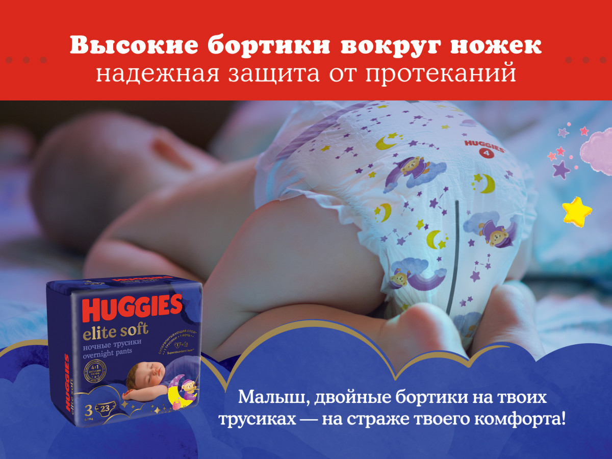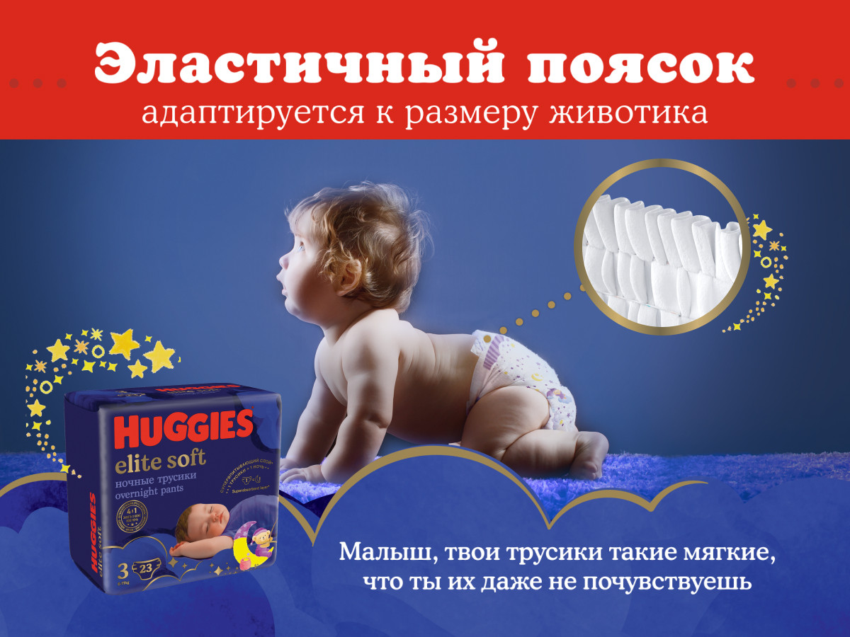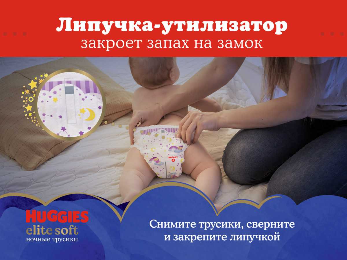 Huggies Подгузники-трусики ночные «Elite Soft»