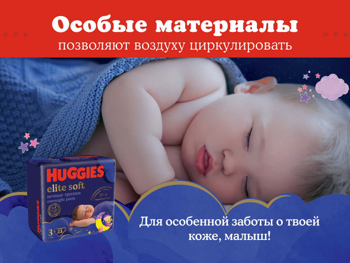 Huggies Подгузники-трусики ночные «Elite Soft»