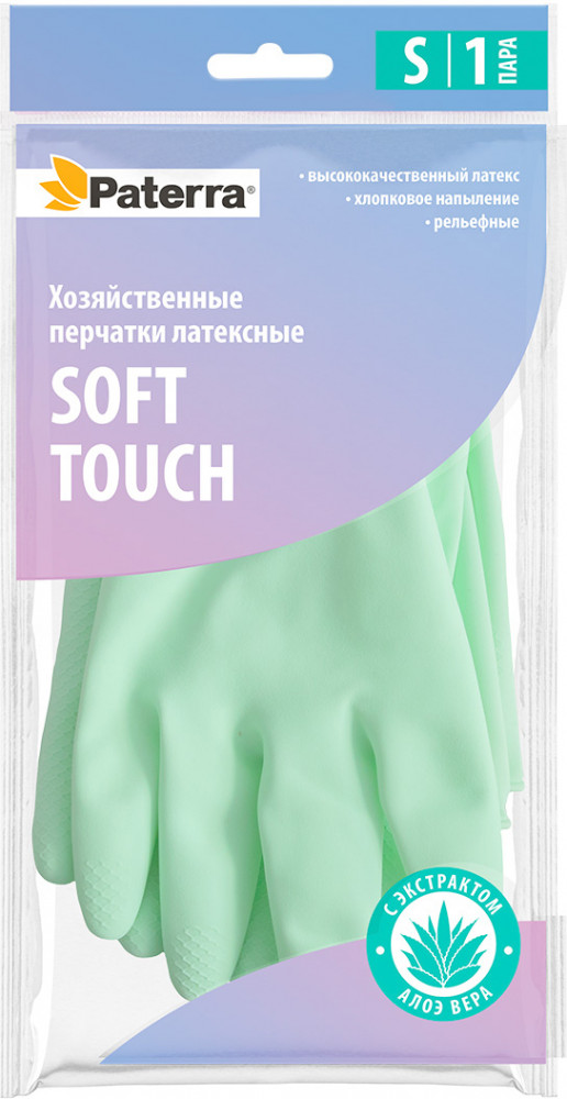 Paterra Перчатки хозяйственные латексные с экстрактом алоэ «Soft Touch»