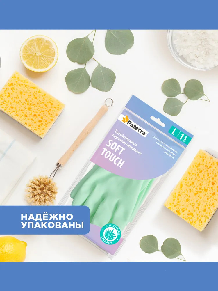 Paterra Перчатки хозяйственные латексные с экстрактом алоэ «Soft Touch»