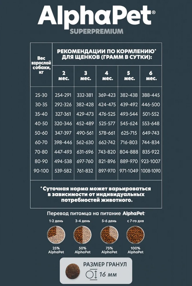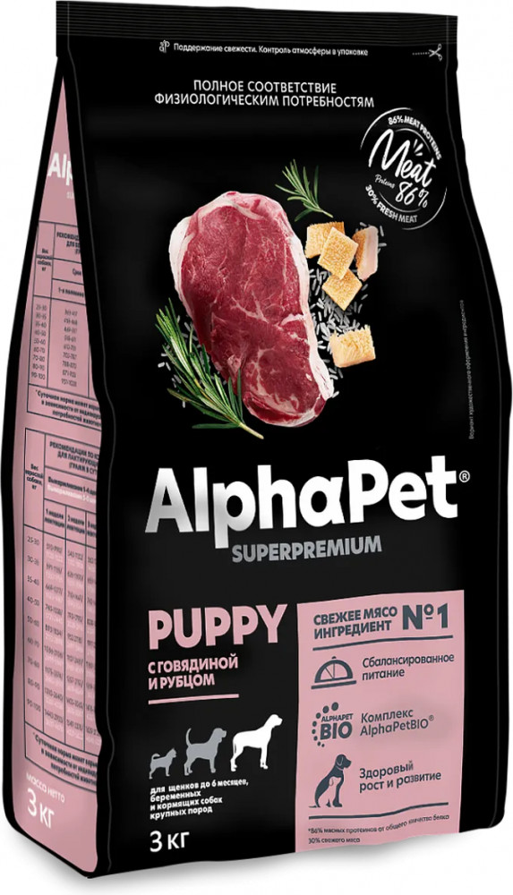 AlphaPet Корм сухой для щенков крупных пород с говядиной и рубцом